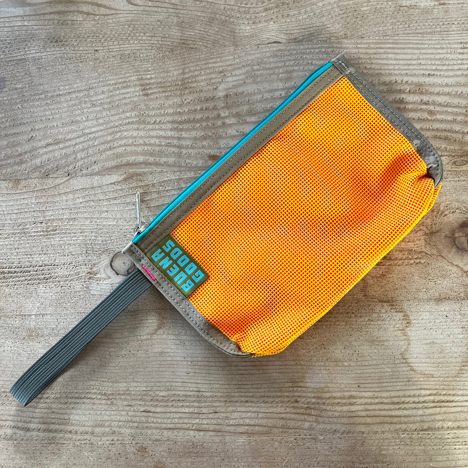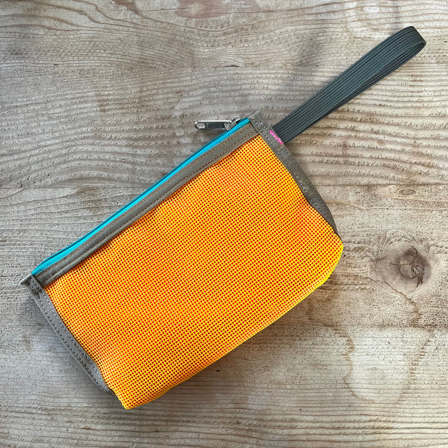 This is the handiest little bag. The mesh is lined for privacy because it is often a purse, but the uses are limitless! It may look dainty, but don't be fooled –– that's a #8 YKK zipper! It's as tough as a Mother and totally clutch! The perfect wrist strap decreases chances of loosing your purse by 25%*