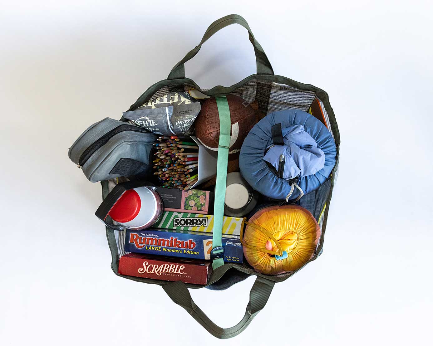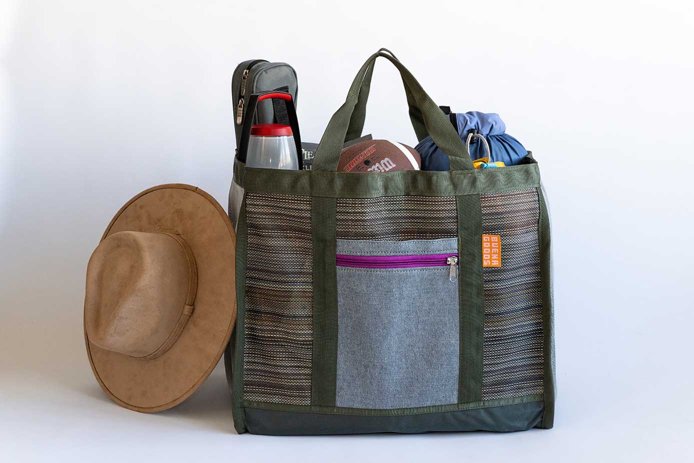 This bag is a serious catch all. The volume is approximately 90L. Will you ever need a bigger bag? Unlikely. Inspired by the ever-useful, blue Ikea bag, but build to last. This bag is the costume bin, the family ski bag, camping trip catch all, wetsuits for the whole fam, or... There's an external zipper pocket and internal pockets, so hopefully you won't loose things in the Abyss.