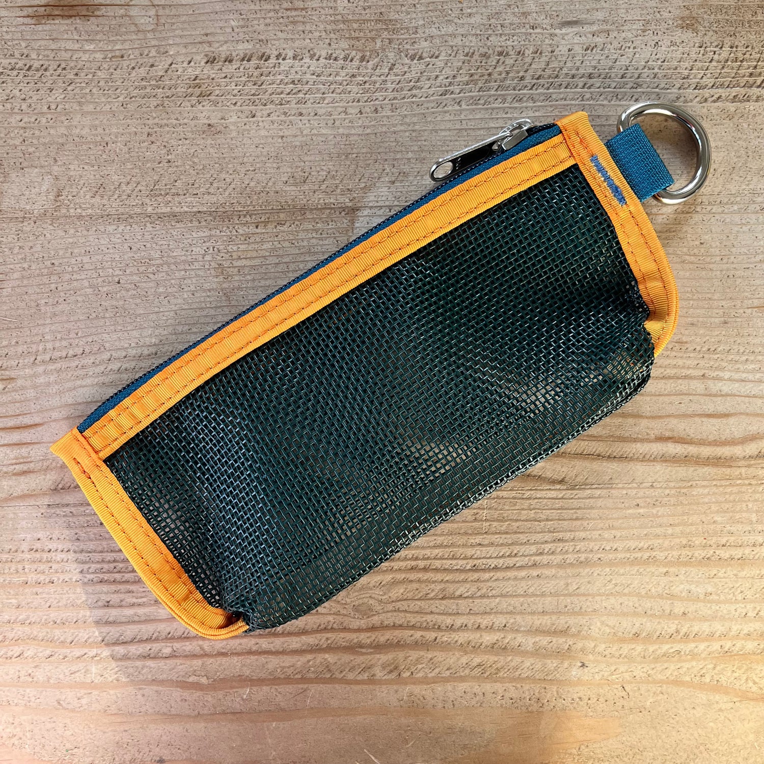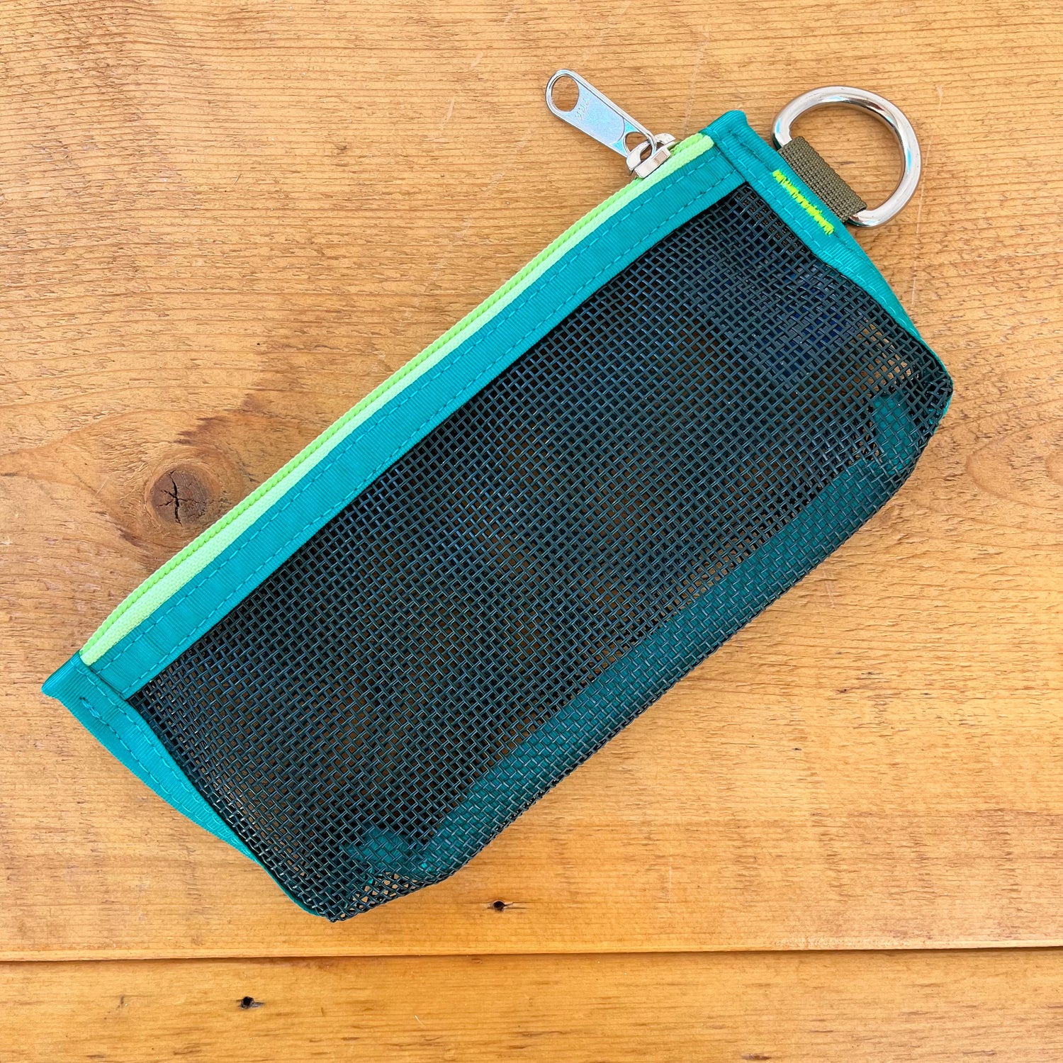 Is it a pencil pouch, wallet, organizational tool? We like it for traveling because the zipper can manage all the coins that other countries use. Made with industrial mesh, this is a no fuss fabric that is transparent.