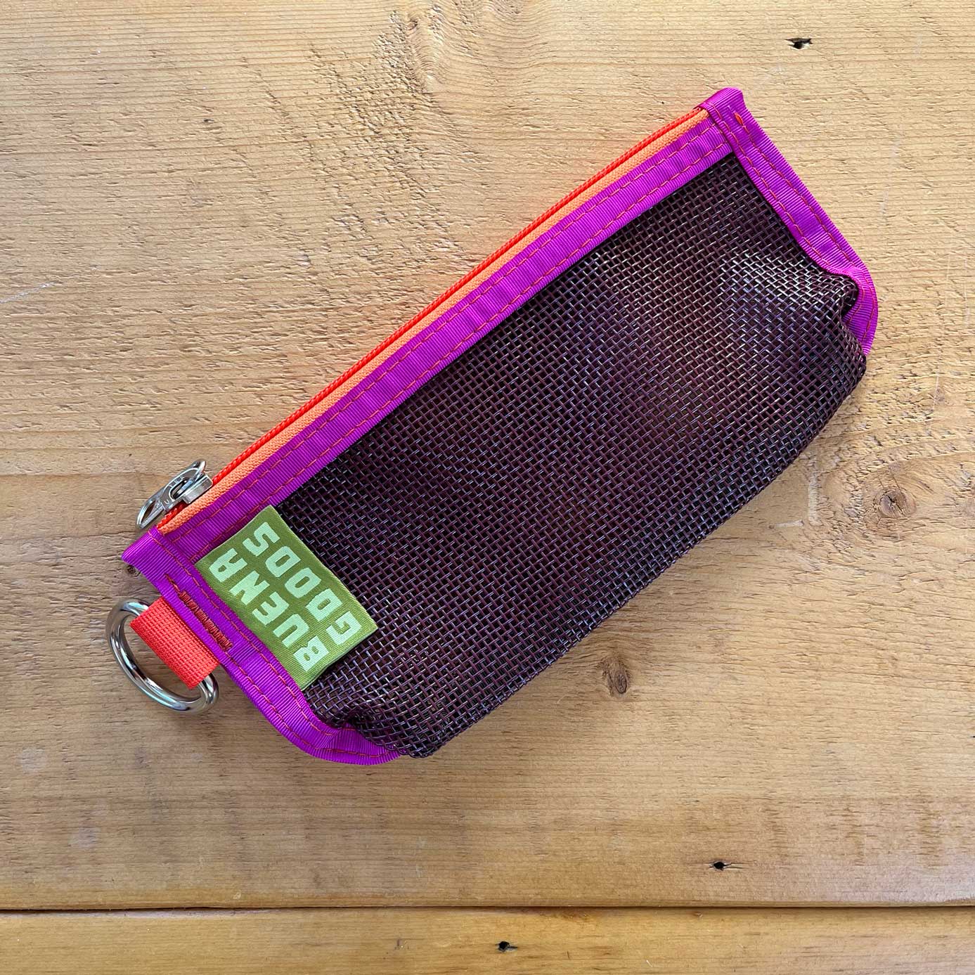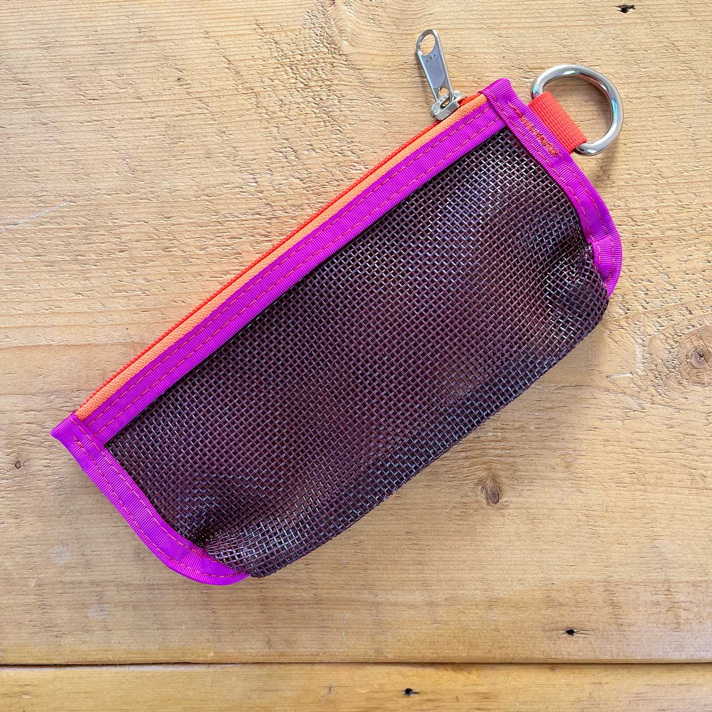 Is it a pencil pouch, wallet, organizational tool? We like it for traveling because the zipper can manage all the coins that other countries use. Made with industrial mesh, this is a no fuss fabric that is transparent.