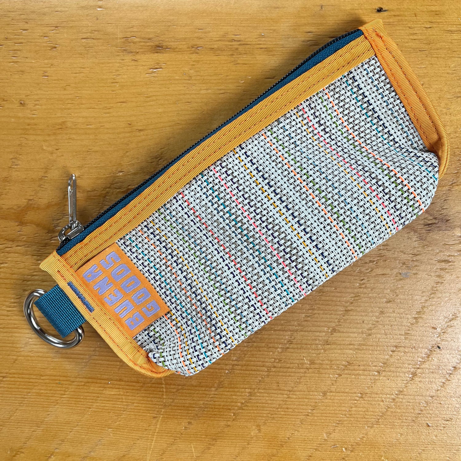 Is it a pencil pouch, wallet, organizational tool? We like it for traveling because the zipper can manage all the coins that other countries use. Made with industrial mesh, this is a no fuss fabric that is transparent.