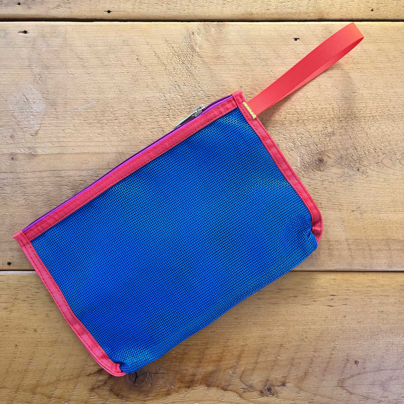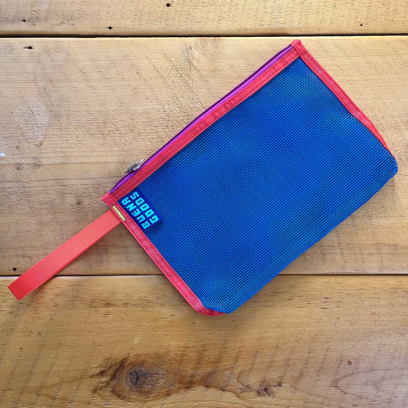 The L size of our pouches - this one is perfect for nesting and organizing - charging cables, sunscreen, toiletries, it's a versatile pouch! Made with industrial mesh, this is a no fuss fabric that is transparent. We use the quality standard brand of YKK zippers on all of our products because durability is a pillar at Buena Goods. How can a good good be good without it?