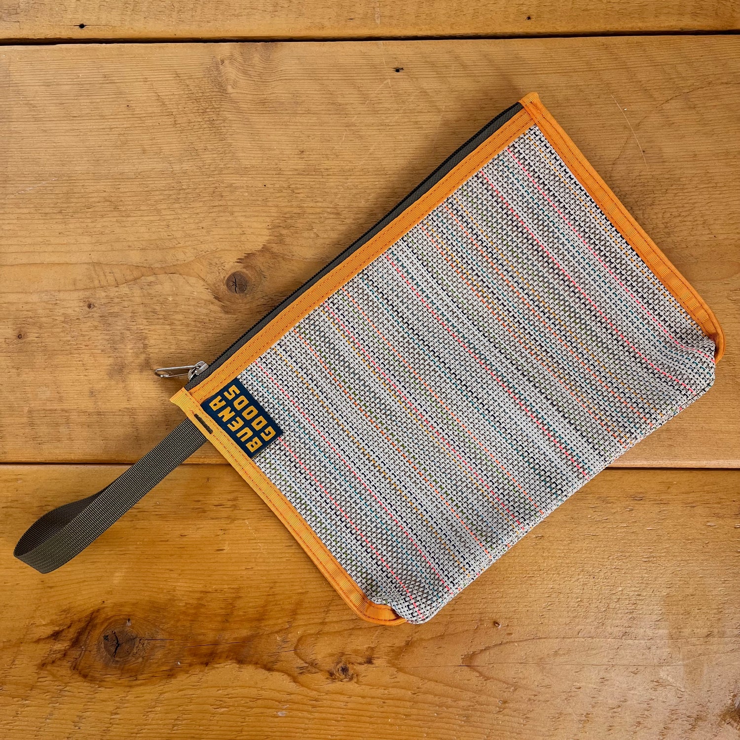 The L size of our pouches - this one is perfect for nesting and organizing - charging cables, sunscreen, toiletries, it's a versatile pouch! Made with industrial mesh, this is a no fuss fabric that is transparent. We use the quality standard brand of YKK zippers on all of our products because durability is a pillar at Buena Goods. How can a good good be good without it?