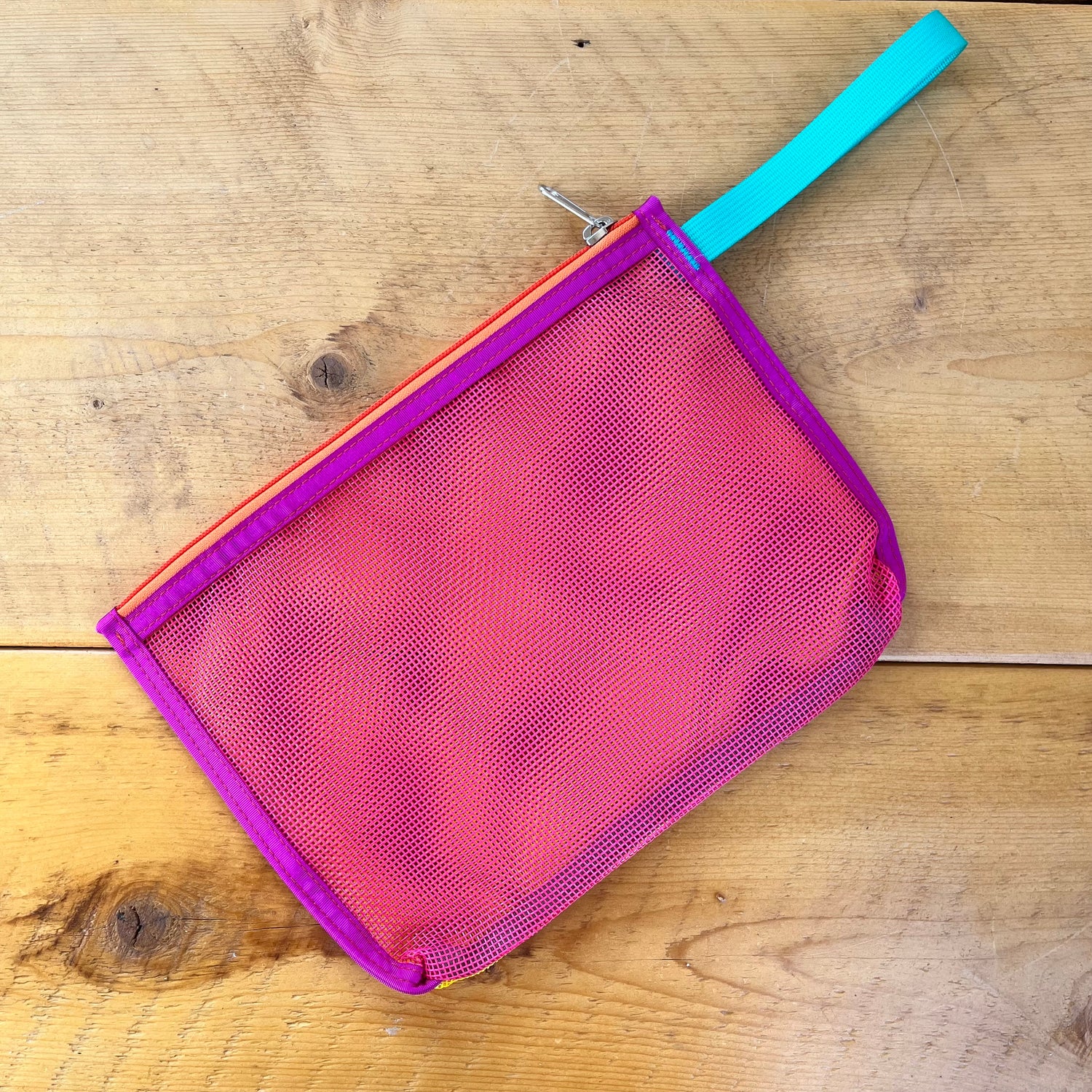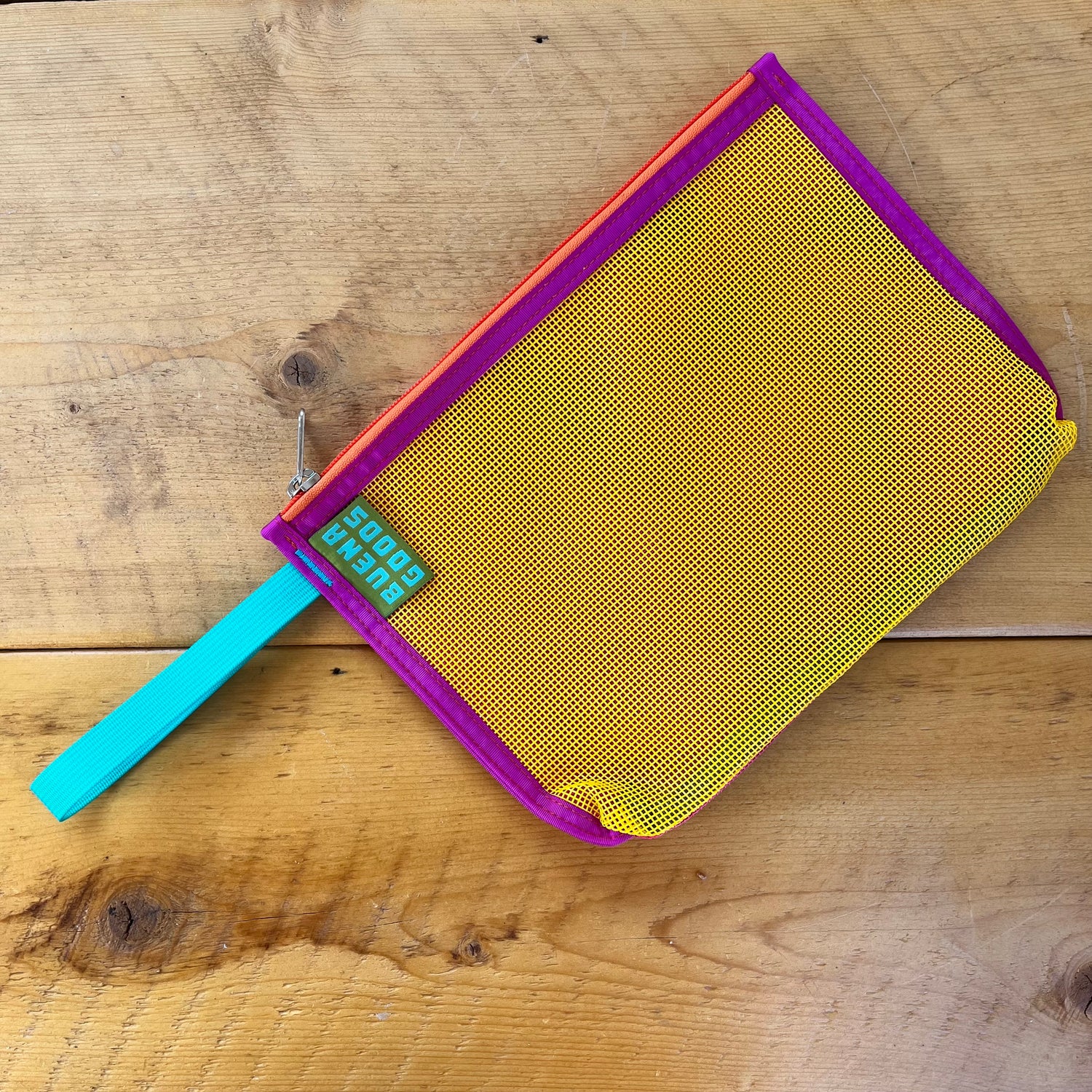 The L size of our pouches - this one is perfect for nesting and organizing - charging cables, sunscreen, toiletries, it's a versatile pouch! Made with industrial mesh, this is a no fuss fabric that is transparent. We use the quality standard brand of YKK zippers on all of our products because durability is a pillar at Buena Goods. How can a good good be good without it?
